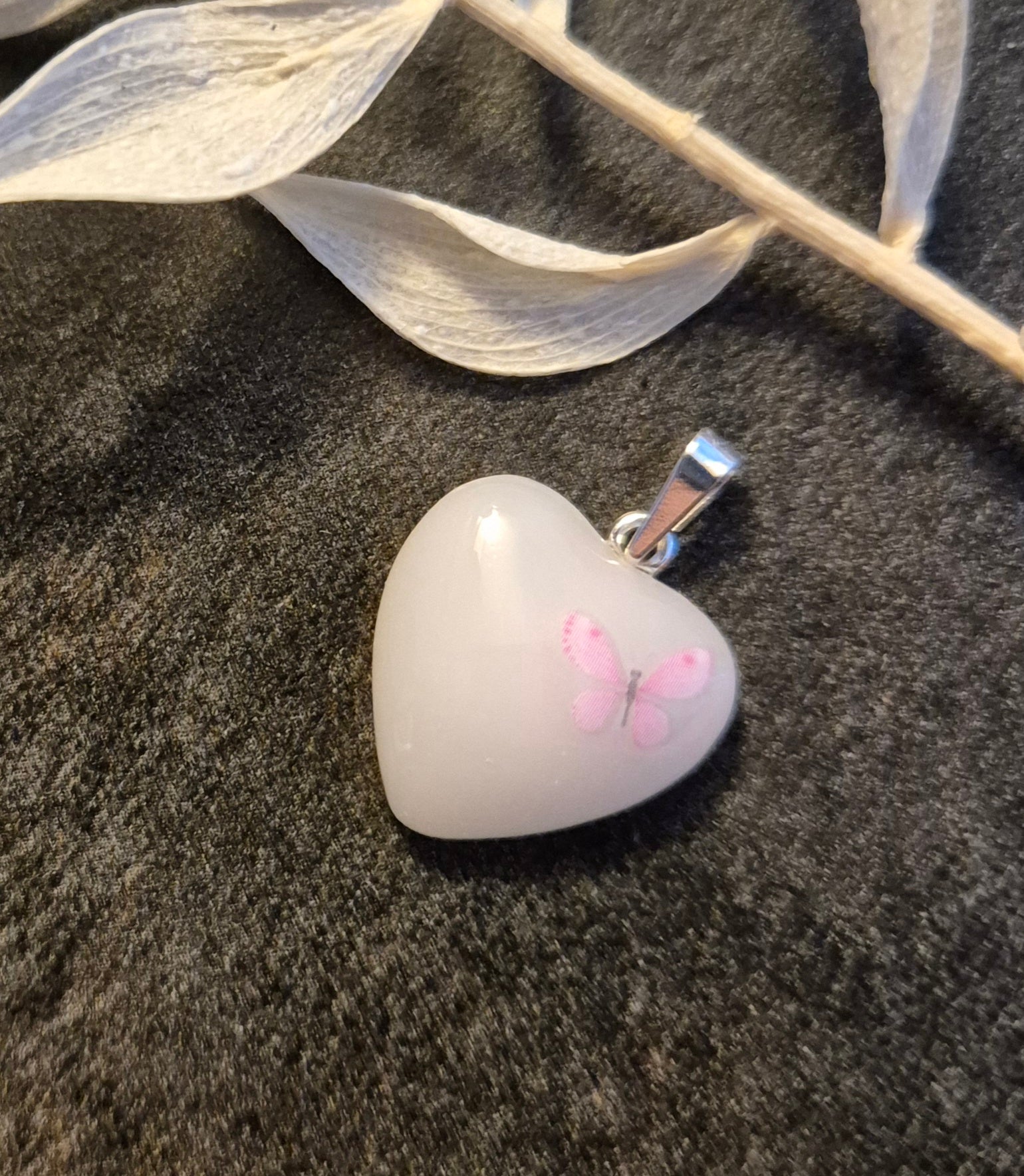 Kuvia löytyy mm. eri värisiä perhosia, erilaisia kukkia ja lehtiä, vaaleanpunaisia kirsikankukkia, valkoisia ja värillisiä höyheniä, valkoisia siipiä, mustia tassunjälkiä sekä punaisia ja mustia sydämiä. Ota yhteyttä sähköpostilla tai yhteydenottolomakkeella, niin valitaan sinulle sopiva vaihtoehto. Kaikki kuviot eivät mahdu pieniin koruihin.