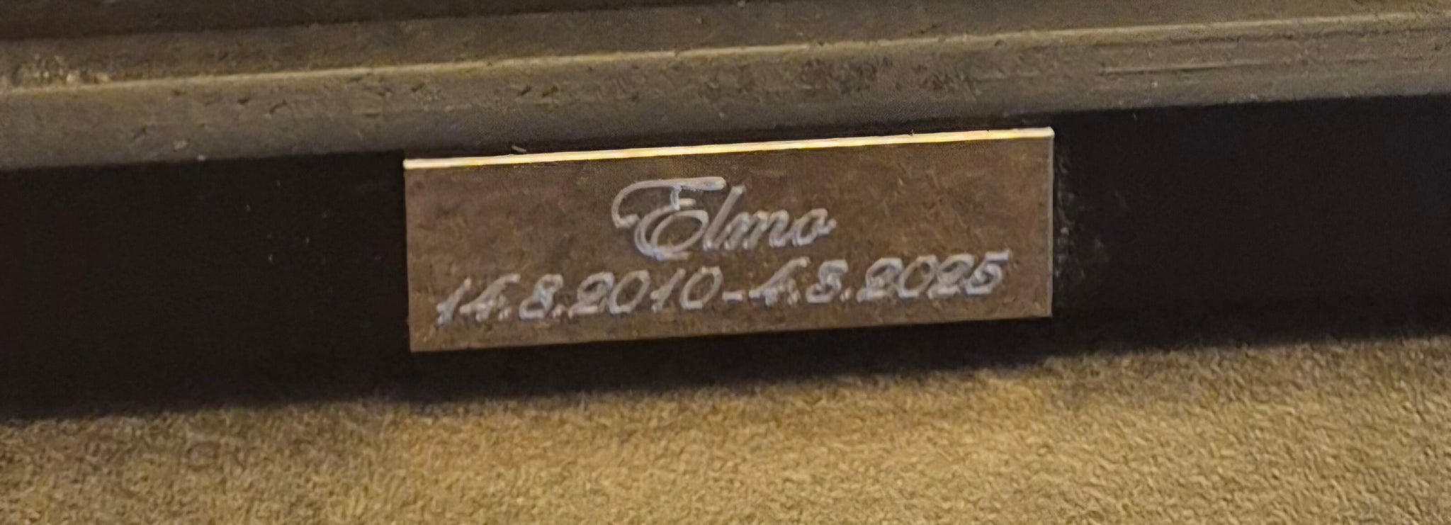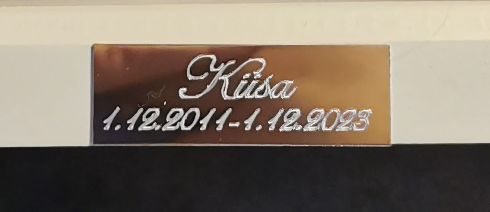 Kullan värinen peruslaatta kaunokirjaimin 30€
