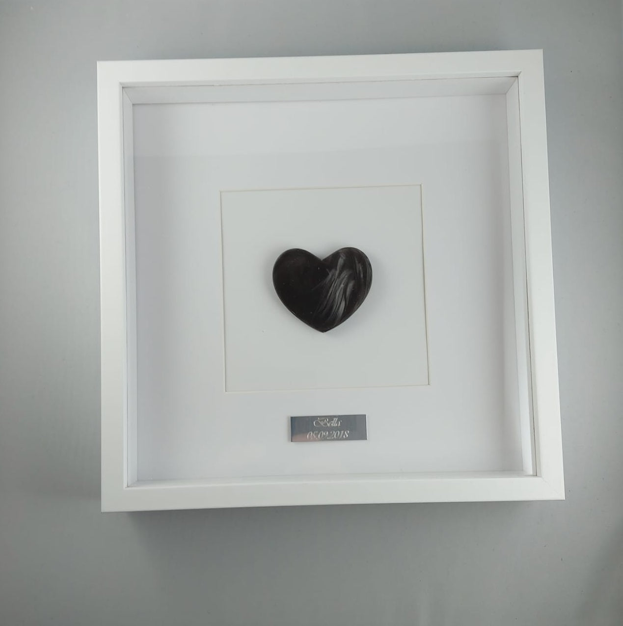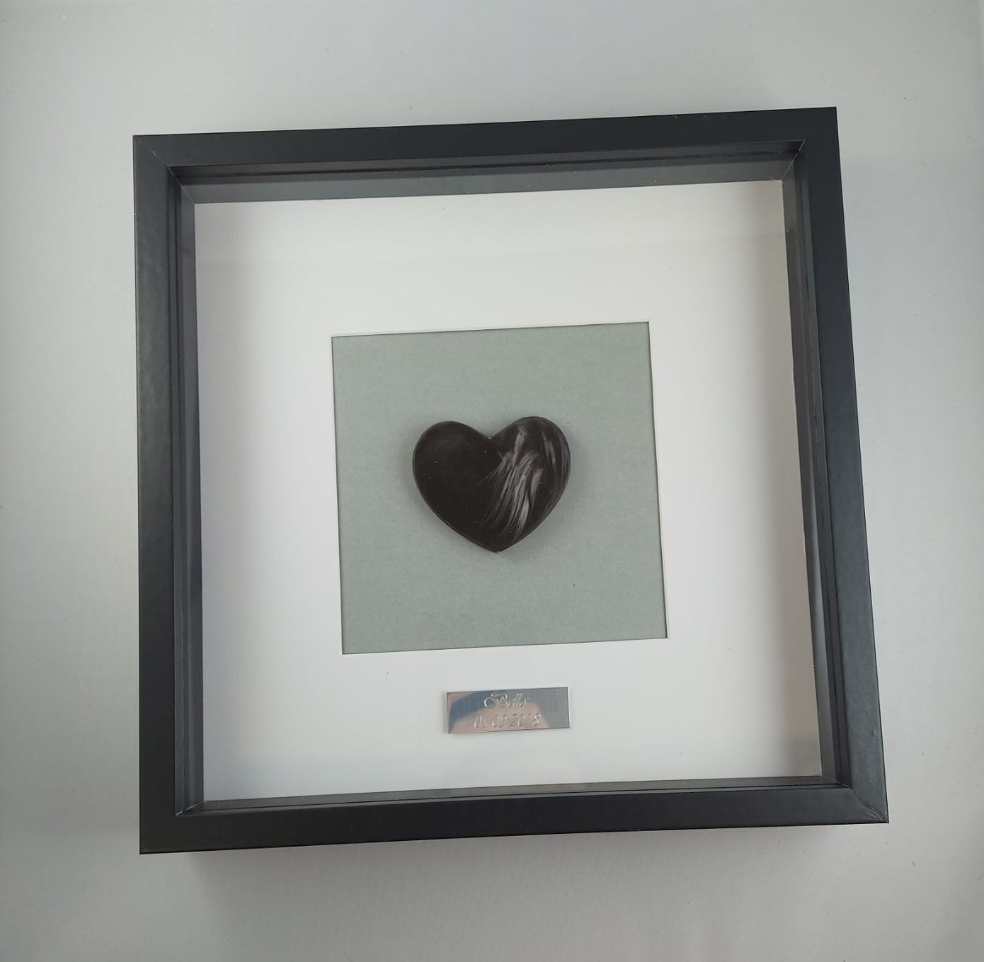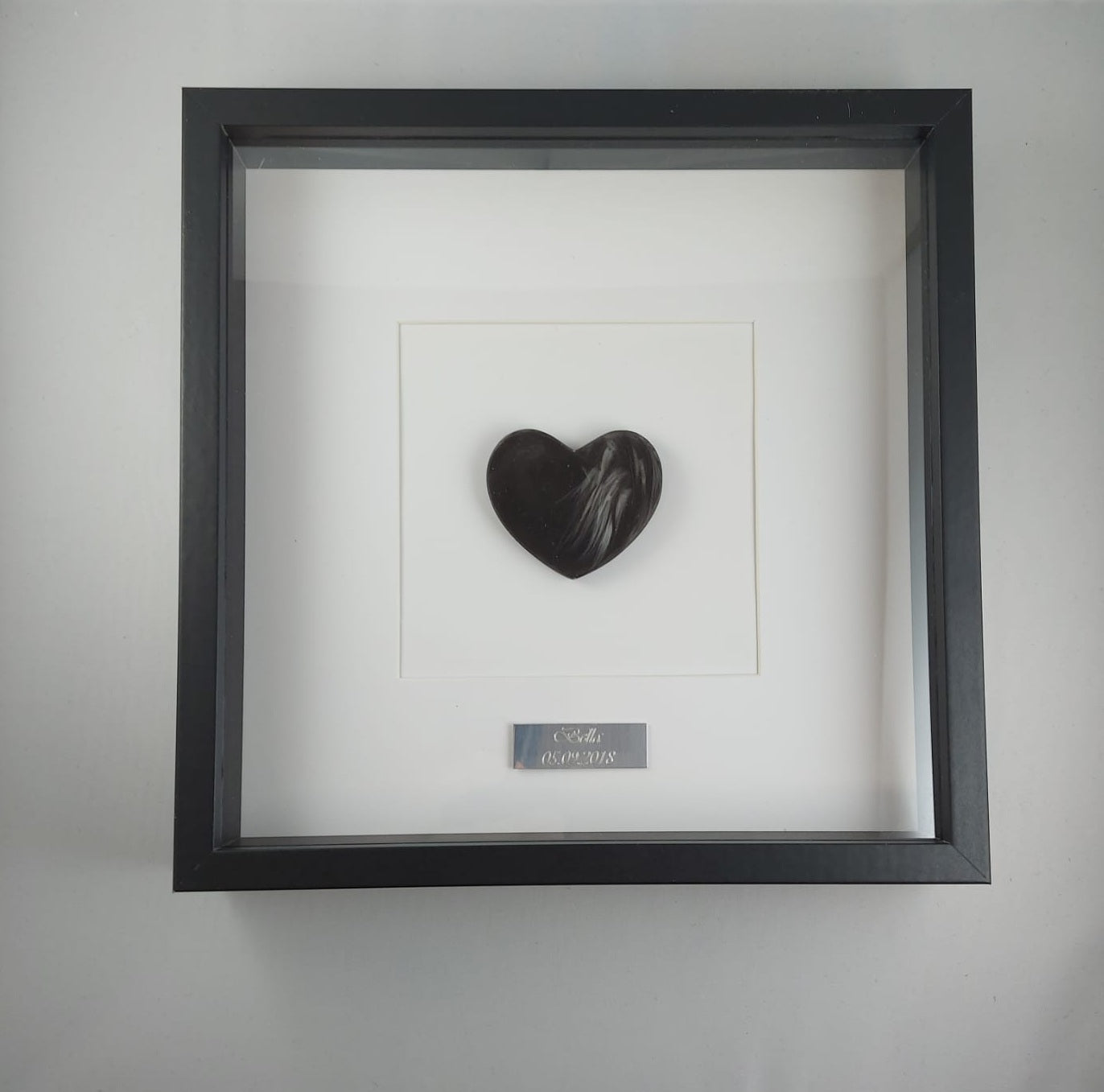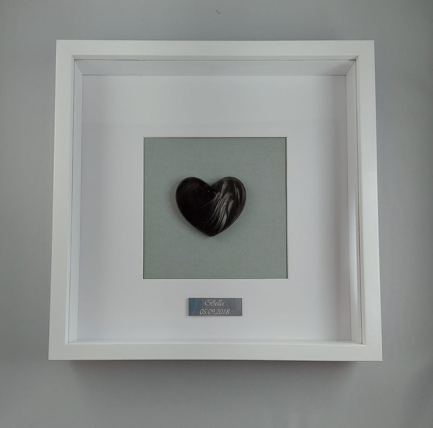 Kaunis muistotaulu ; figuuri tehty käyttäen lemmikkisi karvoja. Taulun voi asettaa tasolle tukijalalla (löytyy takaa) tai ripustaa seinälle (takana kiinnitysmekanismi ruuville/naulalle). Taulun kehykset ovat mdf-levyä ja "lasi" kirkasta pleksiä.